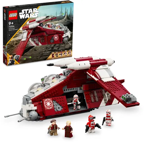 A rajongók a saját Star Wars: A klónok háborúja bevetésük parancsnokai lehetnek a LEGO® kockákból épült Coruscant őrző hadihajóval (75354). 2 pilótafülkét, 2 korongvetőt, 2 állítható ágyút és egy repülés-irányítókart tartalmaz. A hátsó ajtón és az oldalsó tolóajtón keresztül hozzá lehet férni a kabinhoz, ahol elférnek a csapatok. Kitűnő Star Wars™ ajándék a 9 éves vagy idősebb gyerekeknek. A szett 5 LEGO minifigurát is tartalmaz, köztük Fox kapitányt, Palpatine szenátort és Padmé Amidala hercegnőt. Az akciódús játékot 3 sugárpisztoly és 2 sugárfegyver színesíti.